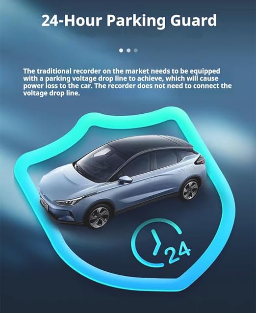 - 【مراقبة وقوف السيارات على مدار 24 ساعة】- قم بتوصيل كاميرا السيارة بمجموعة الأسلاك الصلبة (غير متضمنة) لتحقيق وظيفة الفاصل الزمني، والتي يمكن أن تضمن سلامة المحتوى المسجل، وتوفير مساحة الذاكرة، وتساعد كاميرا لوحة القيادة في السيارة على تحقيق وظيفة مراقبة على مدار 24 ساعة.